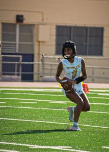 Beyond flag football, Janell is a three-sport athlete, also playing point guard on the girls’ basketball team and competing in track and field, where she runs the 100- and 200-meter dash. Her talents don’t stop at sports—she also enjoys painting, hanging out with friends, and spending time with her siblings, especially her younger twin brother and sister.